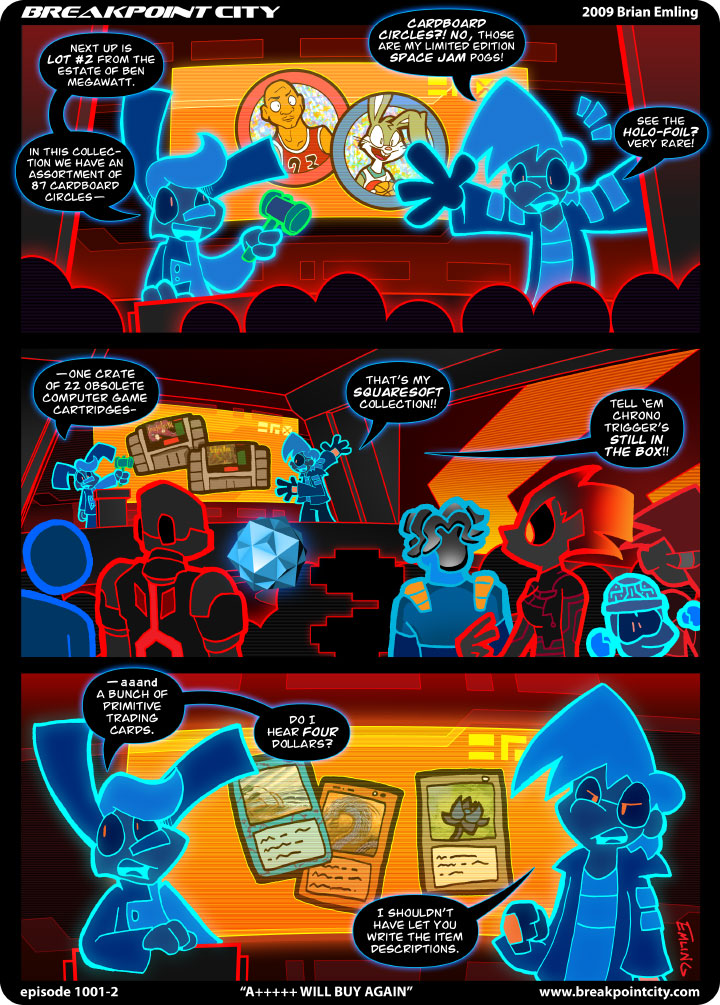 So in the Magic: the Gathering panel, I see a Black Lotus, a blue Hurricane, and some creature I don’t recognize. What is that thing? Looking at E-Bay, it looks like these days a Black Lotus sells for up to $3000, depending on condition. I did a bit of research and it looks like the blue bordered Hurricane (normally a green card) was a misprint and is real but very rare.